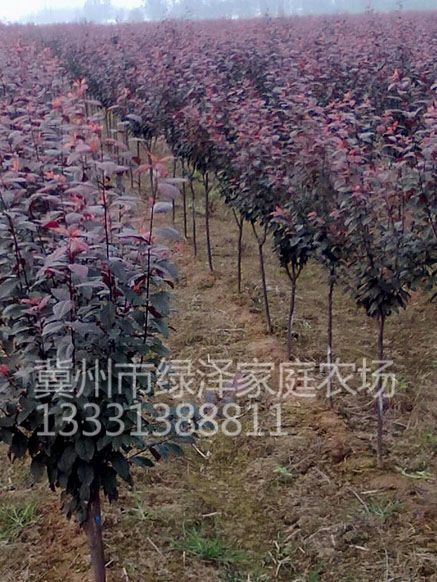 紫叶李,别名:红叶李,蔷薇科李属落叶小乔木,高可达8米,原产亚洲西南部,中国华北及其以南地区广为种植。叶常年紫红色,著名观叶树种,孤植群植皆宜,能衬托背景。尤其是紫色发亮的叶子,在绿叶丛中,像一株株永不败的花朵,在青山绿水中形成一道靓丽的风景线。