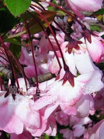 垂丝海棠,落叶小乔木,枝开张,叶卵形,花5~7朵簇生枝端,鲜红色,4~5月开放。高可达8米。枝干峭立,树冠广,卵形。树皮灰褐色、光滑。垂丝海棠性喜阳光,适生于阳光充足、背风之处,土壤要求不严,微酸或微碱性土壤均可成长,但以土层深厚、疏松、肥沃、排水良好略带粘质的生长更好。