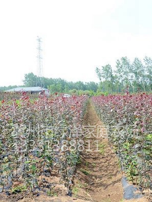 皇家雨点海棠是北美海棠的一种,属于落叶小乔木,蔷薇科苹果属,是现代园林绿化常用树种之一,皇家雨点海棠的高度为5--6.5米,其中在北京地区可 以生长到7米,树冠,呈圆丘状,整株直立呈垂枝状。皇家雨点海棠分支点在0.8米至一米左右,树干颜色棕红色有光泽,叶片颜色也为红色,叶片形状特别,为 甲子形,海棠观赏性高。皇家雨点海棠具有鲜明的贵族气质,每至秋天如雨点一般硕果累累,可延续至明年二月,故取名皇家雨点.她的树型直立,树冠呈圆形,枝 条略显暗紫红色,叶片是可爱的椭圆形。在春,夏,秋三季其叶色始终以橘红色为基调深浅变化,叶片上有金属般的光亮.整个树给人以光彩四溢的感觉.每年4月 上旬始花,花蕾暗黑红色,盛开后逐渐转为暗红色至深紫红色:花瓣约6-10数,排成两轮,花梗直立,花径5CM,花萼筒紫黑色,光滑,萼齿细长,内被稀 毛.果实球形,黑红色,直径约1.5CM,表面被霜状蜡质.果萼宿存,是最具观赏价值的紫叶品种。